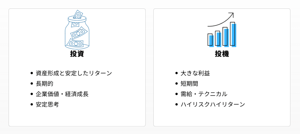 初心者が混乱しやすいのが「投資」と「投機」の違いです。